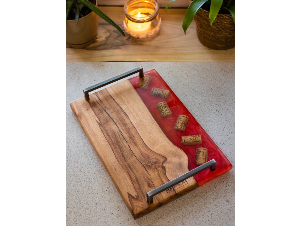 Vytvořili jsme tento podnos s láskou a vášní, určený k tomu, aby vaše hostiny nebo jídelní zážitky byly vždy příjemné. Jemné nuance pomerančové červené barvy jsou dosaženy použitím vysoce kvalitního metalického pigmentu, který dodává podnosu jiskru a živost. Třešňové dřevo, které bylo pečlivě ošetřeno přírodními vosky, dodává podnosu teplý a přírodní vzhled.