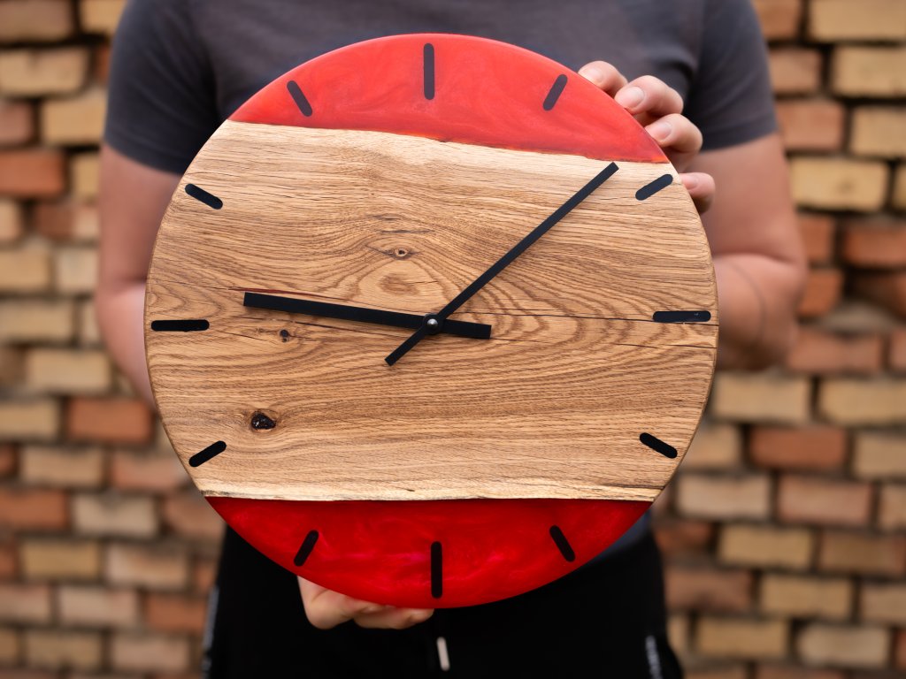 EPOXIDOVÉ HODINY ČERVENÉ - DUB