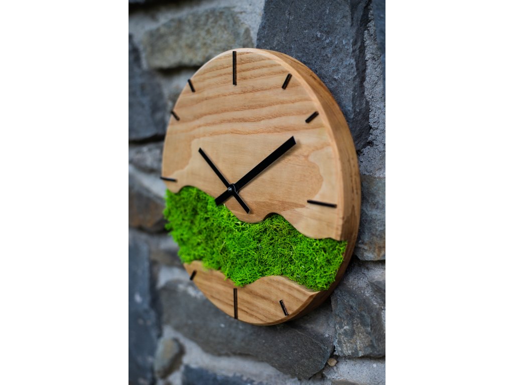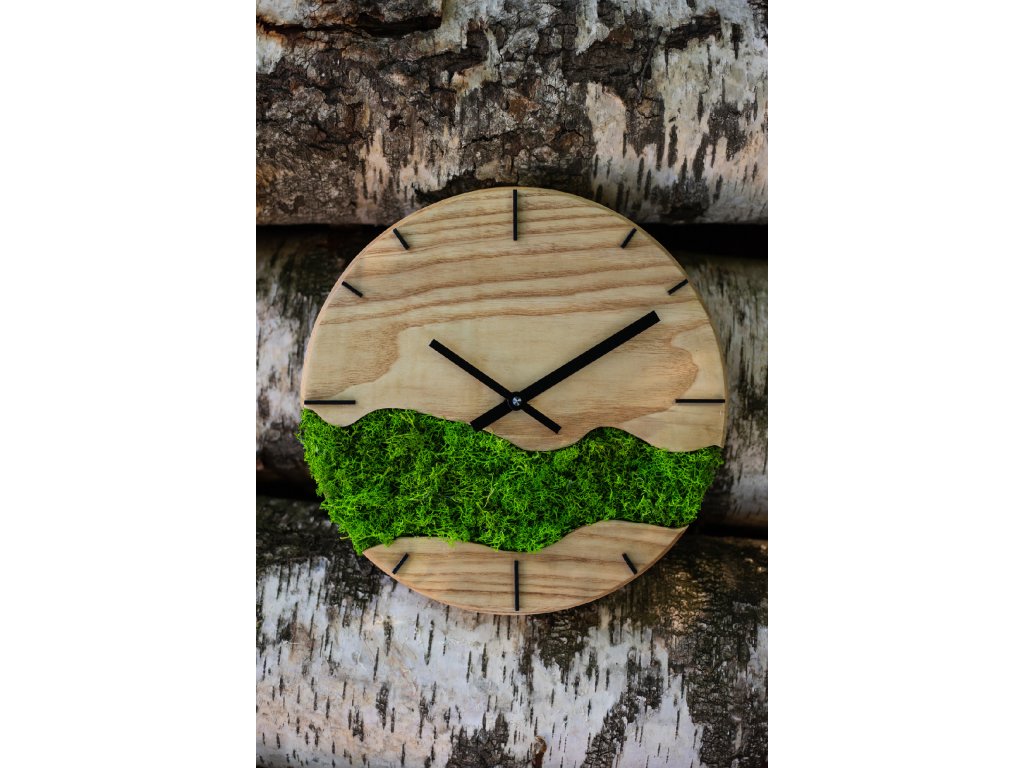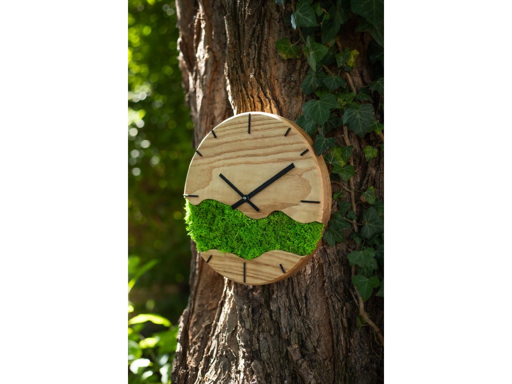 Představujeme vám jasanové hodiny s mechem, průměr 30cm a 40cm - mistrovské dílo, které přináší kousek přírody do vašeho domova. Tato vysoce kvalitní a jedinečná hodinová tvář, vyrobená z masivního jasanového dřeva a zdobená stabilizovaným mechem, je nejen krásným designovým doplňkem, ale také připomínkou přírodní krásy, která se dotkne vašeho srdce.
