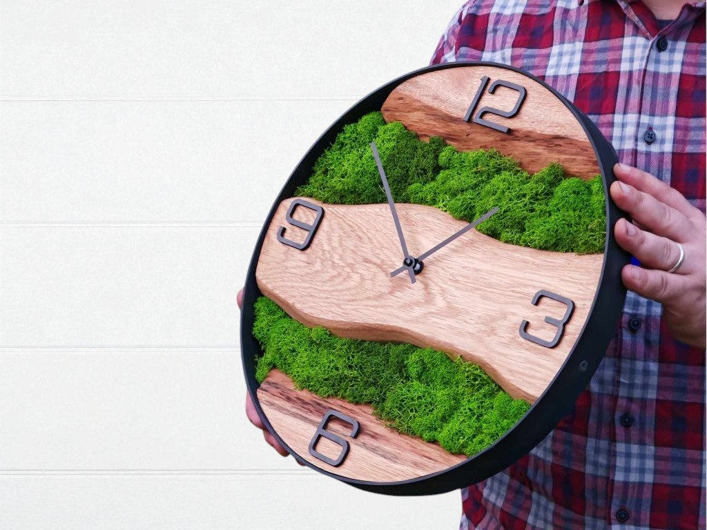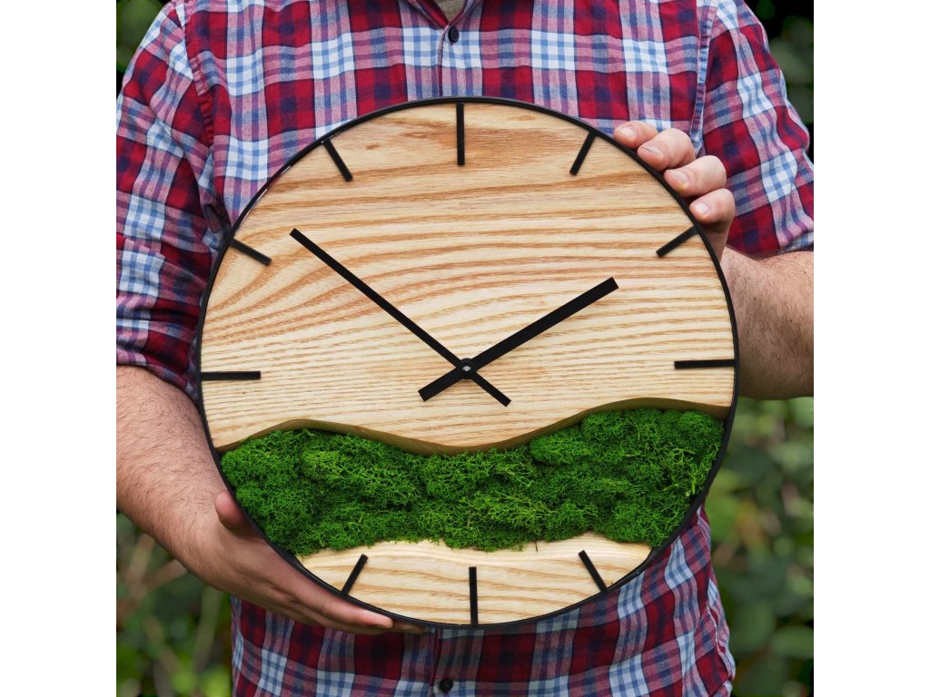 Stále vymýšlíme něco nového a pro jednoho z našich zákazníků vznikly tyto hodiny. Kombinace krásného jasanového dřeva, stabilizovaného mechu (lišejníku).