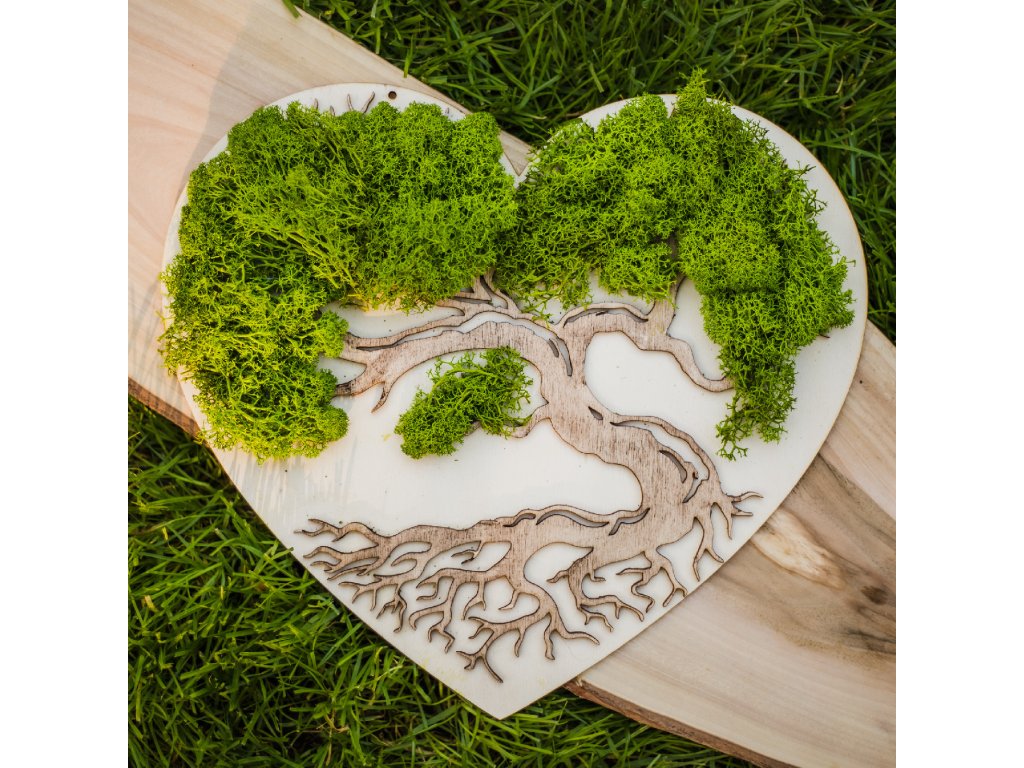 Spojení mechu a dřeva je moderní a nikdy neomrzí. Mechové srdce je krásným doplňkem do vašeho interiéru a zároveň i originálním dárkem pro vaše blízké.